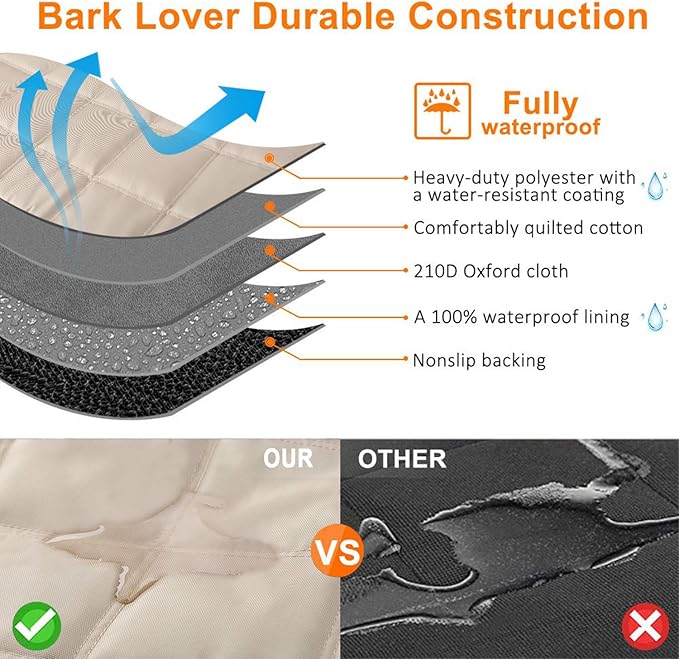 - ✅STRONG DURABILITY TO LAST A LIFETIME & WATERPROOF: Your Bark Lover dog car seat cover is made from advanced functional fabric - 5 times more than cotton, twice as strong as 600D oxford polyester, so this seat cover is not easily torn or worn by the claws of large dogs.