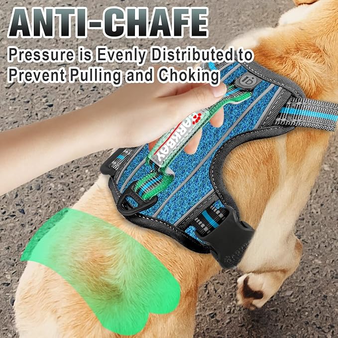 BARKBAY No Pull Dog Harness Large Step in Reflective Dog Harness with Front Clip and Easy Control Handle for Walking Training Running with ID tag Pocket(Blue/Black