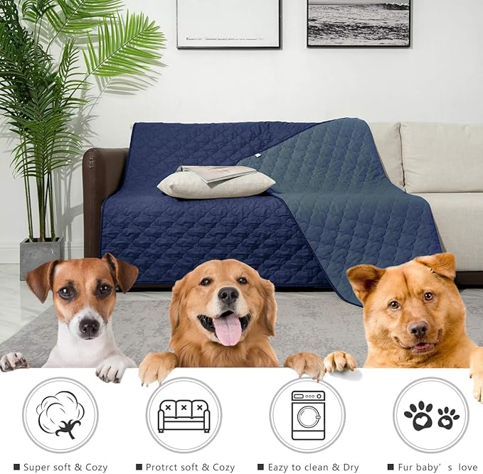 SPXTEX Dog Bed Cover Washable Pee Pads Dog Blankets for Puppy Large Dog Cat 1 Piece(68"x82",Navy+Stoneblue)