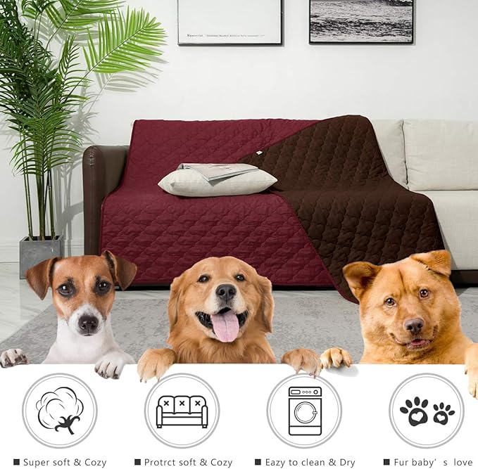SPXTEX Dog Bed Cover Washable Pee Pads Dog Blankets for Puppy Large Dog Cat 1 Piece(68"x82",Burgundy+Chocolate)