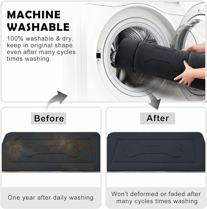 - 100% Washable Dog Crate Bed: Fabric fleece material mats allow both machine and hand wash in cold water, gentle cycle and tumble dry. The crate mat will recover original shape after many times cycles of washing.