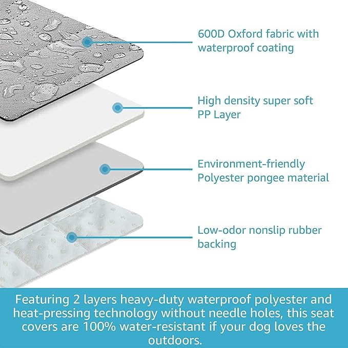 - 2 LAYERS HEAVY-DUTY 100% WATERPROOF: Featuring 2 layers heavy-duty waterproof polyester and heat-pressing technology without needle holes, Lassie back seat cover for car seats can stand up against whatever your pooch throws it, from lake water, muddy paws, drooling to liquid messes. Two side flaps cover the sides of your car seat and make it easier for your pet to get in and out of the car without damage your car seat.
