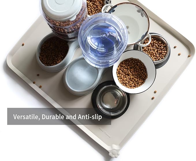 - Extra High raised outer lip prevents food, water and treats from spilling onto your clean floors! Please refer to measurements for size.No more messy spills on floor again.