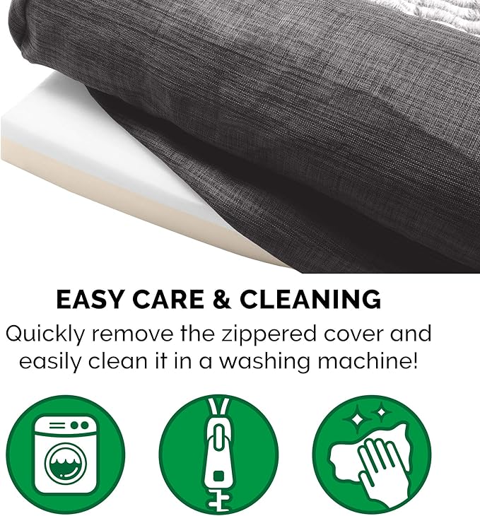 - EASY CARE: The dog bed cover is completely machine washable and is easily removed with a two zipper design that allows access to the foam base and bolsters; for more specific care instructions, please refer to the hang tag and/or seam label