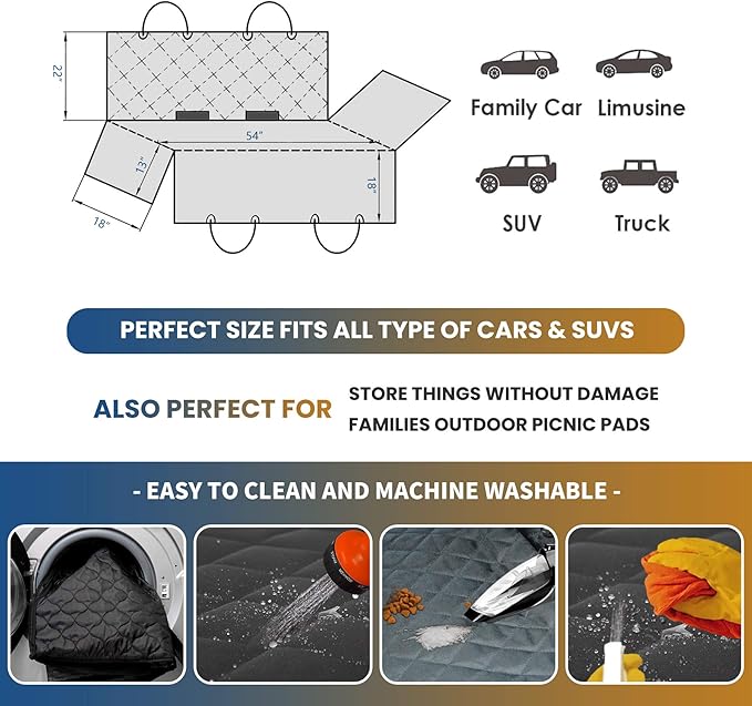 - 🐶【4-in-1 MULTIFUNCTIONAL DOG CAR SEAT COVER】Winbate dog car seat can be easily converted between dog hammock, bench car seat covers for dogs, half back seat cover or cargo liner with zipped up or down. It allows you share back seat with your dog friend. Universal size of 54" W x 59 "L fits different vehicles like cars, trucks, SUVs, Easy and fast installation of fewer than 60 seconds, you can enjoy your family excursions, going camping or having a picnic without any damage!