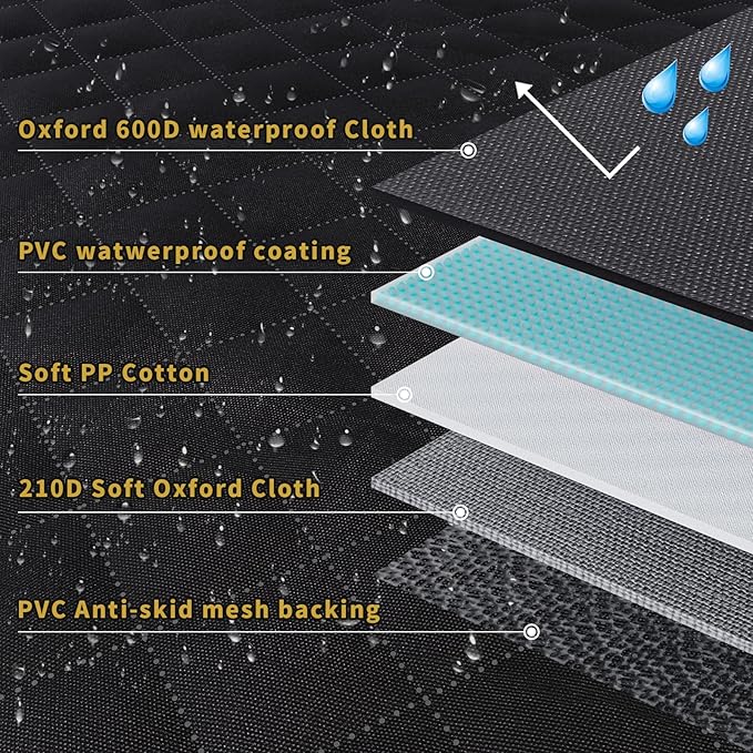 - 🐶【100%WATERPROOF & NONSLIP & SCRATCHPROOF】Constructed out of 600D heavy-duty Oxford fabric and PP cotton can protect your back seat from liquid, moisture, saliva and scratch. Built-in 2 seat anchors, 4 headrest snap buckles and Non-slip backing surface prevent seat cover from sliding around. And you can use your seat belt through the 2 Velcro-openings. All this to ensure your dog safe, safety is always a priority!