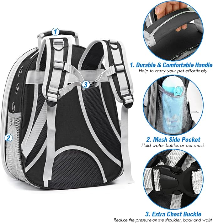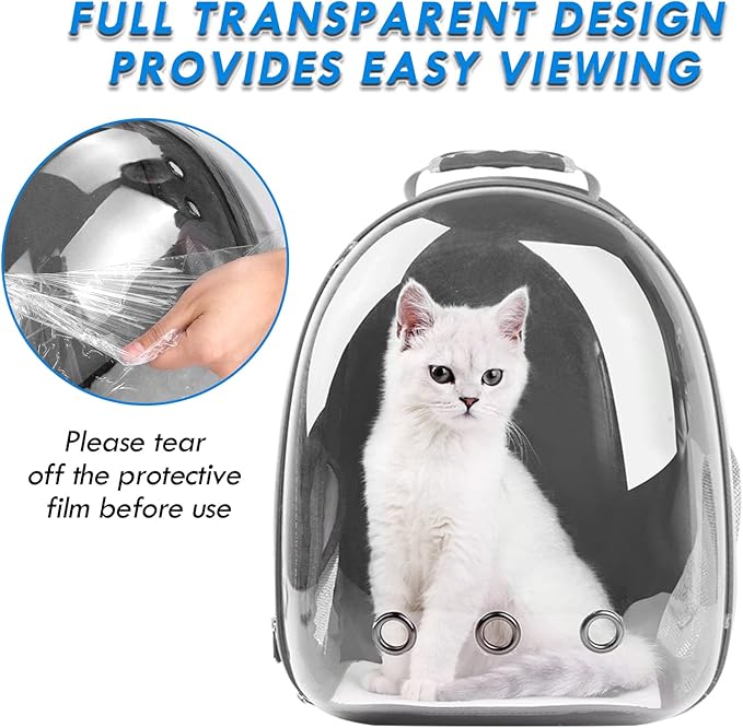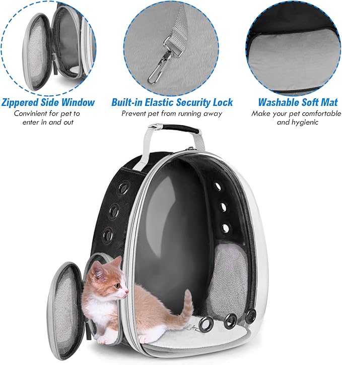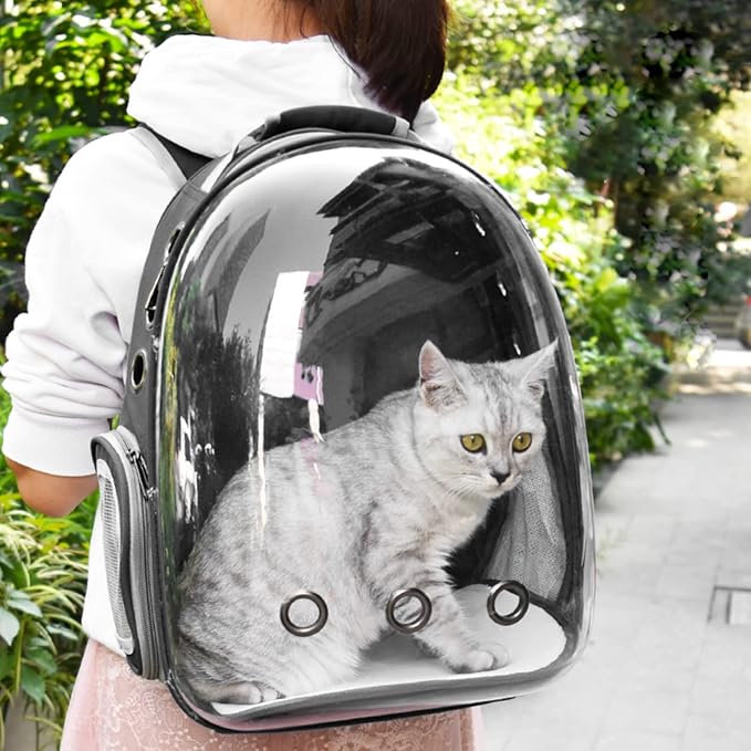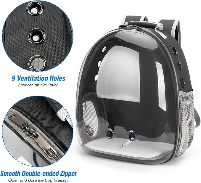 - Breathable & Perspective Cat Travel Bag: 9 ventilation holes on both sides and front, left and right ventilation nets promote air circulation. Clear bubble capsule window makes this cat backpack cool and fashionable, and it is also convenient for you to observe the movement of your pets while they are enjoying the scenery outside