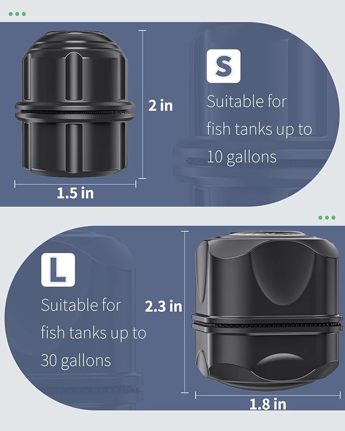 - For Glass Tanks Only: Measure 1.8" D x 2.3" H. Perfect size for fish tanks up to 30 gallons. Work well to clean glass with thickness less than 4/5 inches. Not Fit for Acrylic or Plastic Tanks!