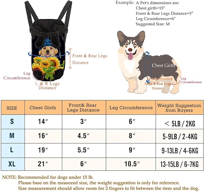 - [Recommended Size] Recommended for dogs under 15 lb, the larger dog may bring uncomfortable feeling for you. Please base on the measure size, the weight suggestion is only for reference. We Highly suggest leave more 1 inch give your pet feel comfy. Please refer to the size chart for specific measurement methods.
