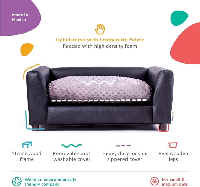 - For pet up to 25 lbs. Furniture dimensions: 28" x 20" x 12" Sleeping area dimensions: 20" x 17"