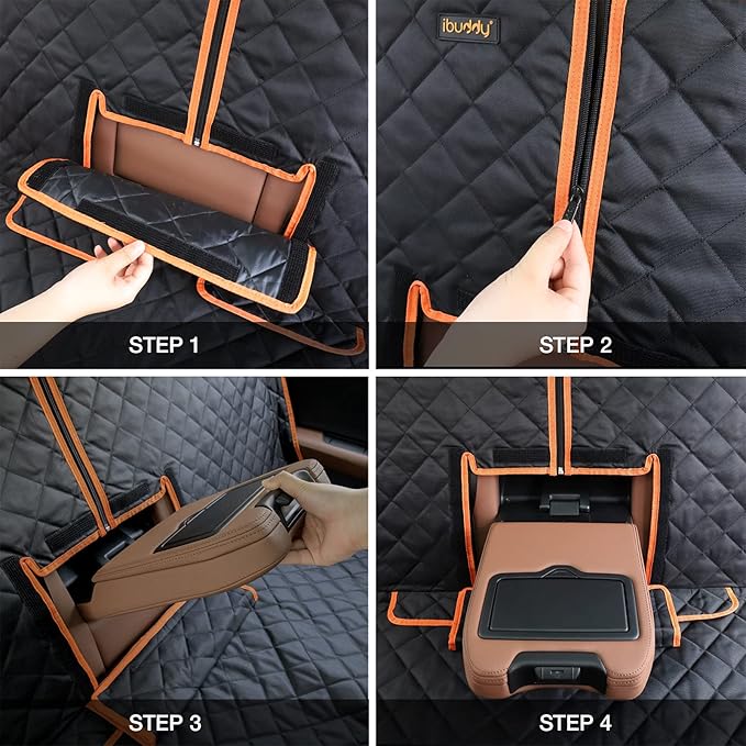 - COMPATIBLE MIDDLE ARMREST&SEAT BELT-Dog truck seat cover could use the armrest and cup holder to provide a cozy driving environment. Included openings to insert dog seat belt keep your dog safer and prevent jumping to the front seat while the car is moving.