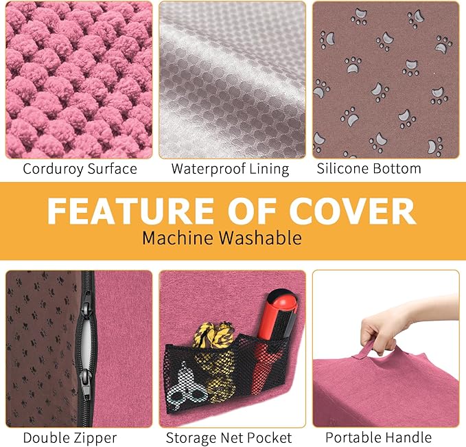 - Waterproof Cover: The surface of the cover is corduroy with a built-in waterproof layer. Corduroy can increase the friction between pet's paws and pet steps. Waterproof cover can protect the sponge. Even if the pet accidentally urinates, it will not leave the smell on the cat stairs again. The bottom design silicone made of dog paw prints. Both cute and can do non-slip to maintain stability. The cover is designed with a zipper and is removable and machine washable.