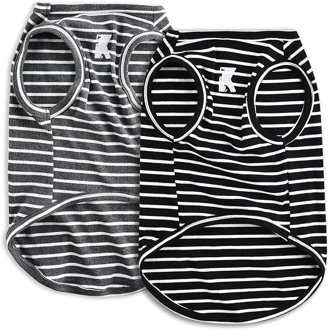 - 【Stretchy & Lightweight】Sleeveless pet vest design, Easy to put on and take off. Suitable for daily wear and as a sports vest. With strong elasticity, Well-sewn, Super stretchy, and suits for pets of all body types, Pets also move freely. It is not only adorable daily wear but also a cared gift. The colors are diverse with stripe, the matching is different, it is fashionable and cute.