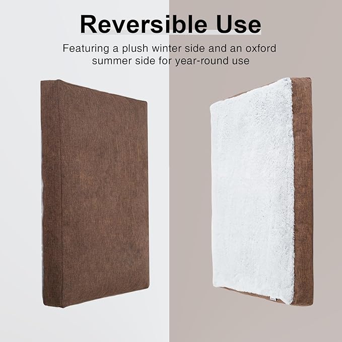 - 🌈ALL SEASONS USE: Rennaio reversible dog bed features soft plush material on one side, suitable for autumn and winter, and another chew-proof Oxford fabric side, suitable for spring and summer.