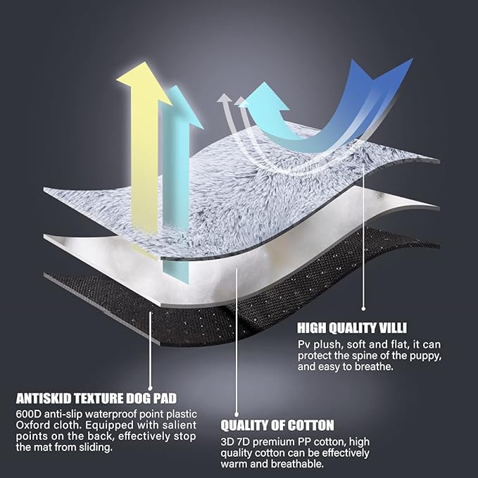 - First Opening, Due to vacuum packaging and long shipping times, dog bed may be relatively flat. Please Shake it completely and pull the fiber apart with your fingers to open it. Or put the dog mat in the dryer at the low temperature drying for a few minutes, the dog mat will completely fluffy.