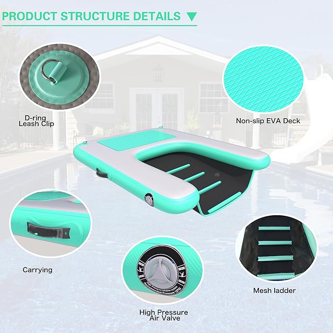 - IDEAL FOR DOG:This inflatable water ramp is an ideal tool for your pet dogs. The weighted mesh sinks into the water with the ramp step design providing a quick and easy entry point for swimming pets. Ideal for all-day play, it allows dogs to enjoy water play and increases interaction between owner and pet.