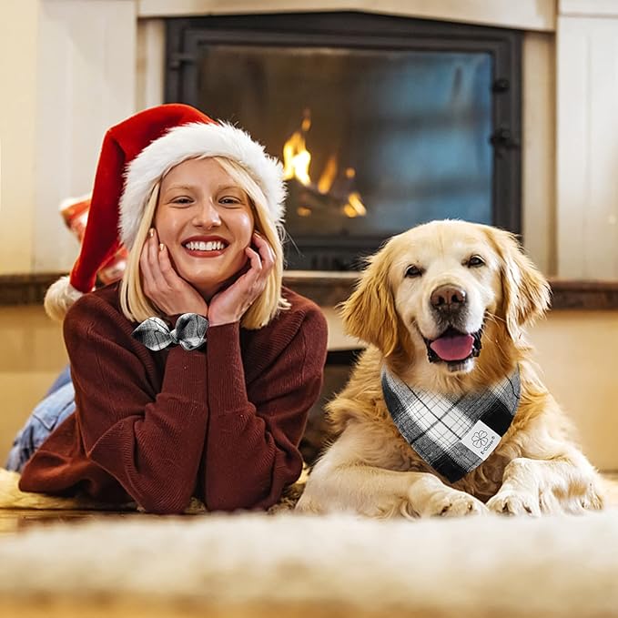 - Matching Bandana and Scrunchie Set - It’s full of love when your pets is wearing the buffalo bandanas and you are wearing the bow scrunchies. When traveling, sleeping, taking photos or daily walking, adorable doggie bandana and plaid scrunchie is a pretty accessories. The scrunchie can be worn as a wrist accessory and hold your hair. Beautiful dog drool bibs and bow scrunchie with black and white check pattern, it’s nice photo props.