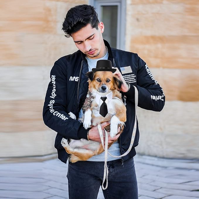 - Package Included - 1 pet top hat, 1 pet necktie collar, easy accessory set includes basic accessory you need to turn your pet into a formal look