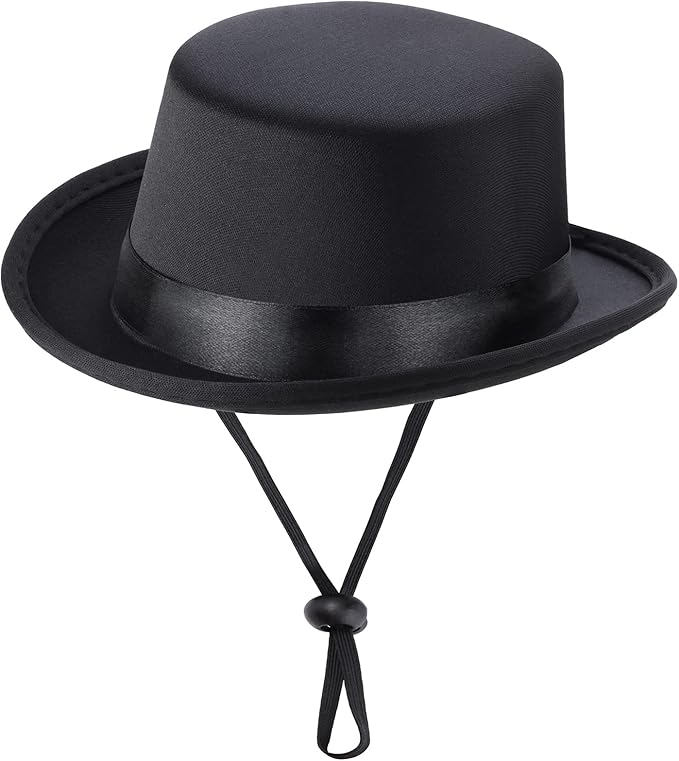 - Pet Top Hat - Pet top hat made of premium polyester material, it is comfortable for wearing, classic black style; Has a chin strap that can accommodate any pet size, fantastic accessory for a pet gentle look