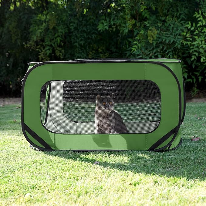 - COLLAPSIBLE & PORTABLE: Our pop up kennel folds down small in seconds for easy travel and storage. Take the entertainment with you anywhere, so your pet is never bored!