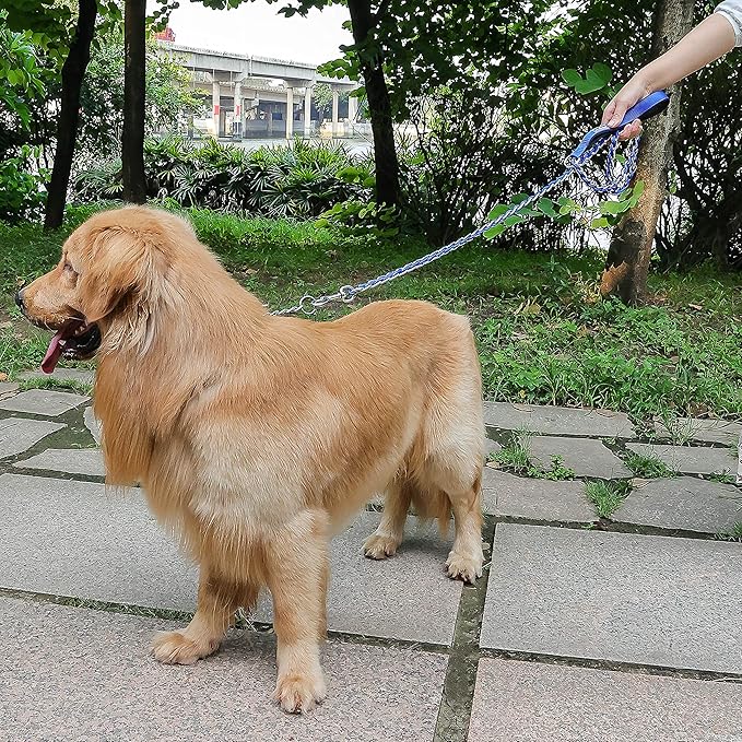- [Durable and Chew Proof] - Our chain link dog leash using high quality plating process, comes with heavy duty swiveled clip, simple and practical, strong tensile resistance.