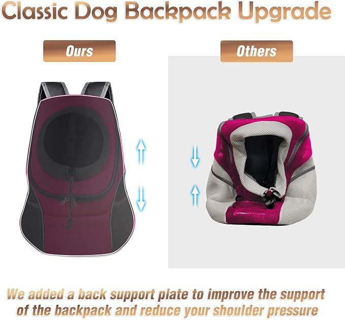 - 【High-quality Material Upgrade】The front adopts a more comfortable mesh, and on the back of the dog backpack we add a back support plate to improve the support of the backpack, which can greatly increase your comfort.