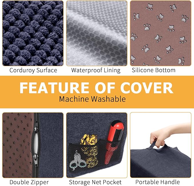 - Waterproof, Washable Cover: The surface of the cover is made of corduroy, the bottom of the dog paw pattern made of silicone, the sides and back are made of suede, all-round to achieve the effect of non-slip. Cover added waterproof layer to protect the sponge from getting dirty. Even if the pet accidentally pee on the dog ladder, will not leave a mark on the sponge. Only need to clean the cover can be. Cover can be machine washed.