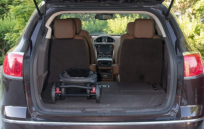 - Pocket for storing cellphone, keys, etc. Front shock absorbers and Swivel wheels, and rear safety brakes