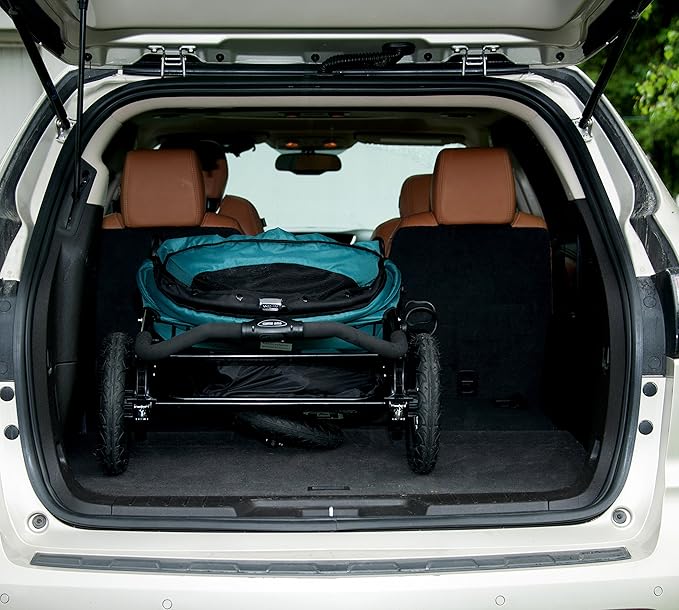 - Extra-wide carriage provides a spacious and comfortable ride; two interior safety tethers included