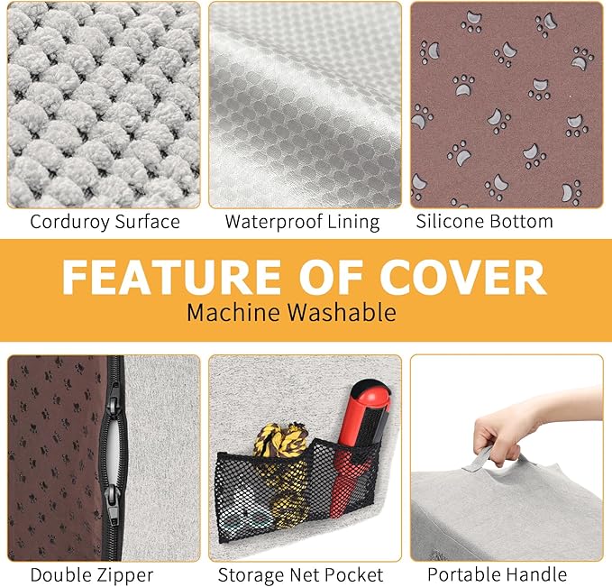 - Waterproof, Washable Cover: The surface of the cover is made of corduroy, the bottom of the dog paw pattern made of silicone, the sides and back are made of suede, all-round to achieve the effect of non-slip. Cover added waterproof layer to protect the sponge from getting dirty. Even if the pet accidentally pee on the dog ladder, will not leave a mark on the sponge. Only need to clean the cover can be. Cover can be machine washed.