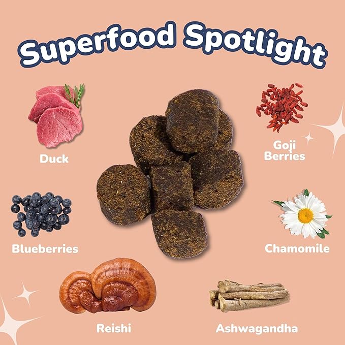- 🦮 DOG RELAXATION CHEWS: Our dog supplement boasts dog superfoods such as hemp for dogs, reishi, ashwagandha for dogs, yucca for dogs, and turmeric for dogs to help naturally relax our dogs. Our dog calming treats are a comfort dog supplement and will instill dog calm.
