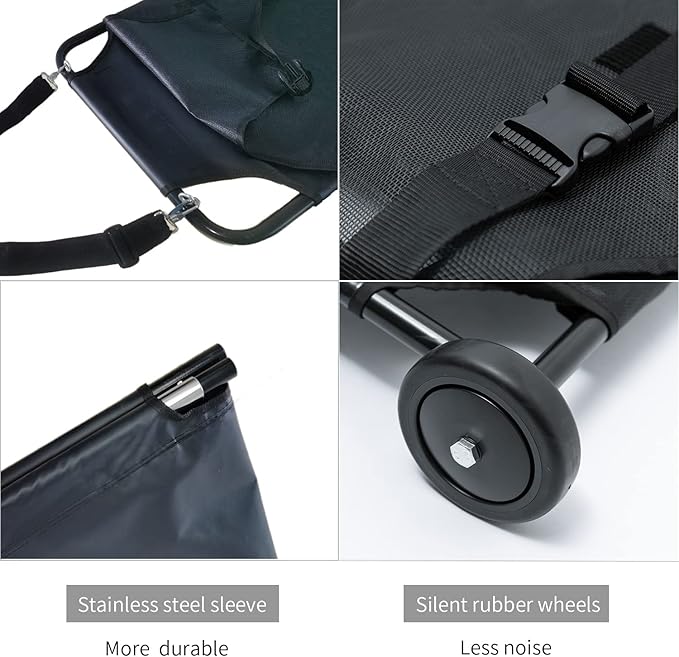 - 【Upgraded Wheels】Equipped with two wheels, which are different from traditional hard plastic wheels. This wheel is quieter, and the installation is firmer. It can be moved easily even on rough surfaces. On the other hand, the length of the shoulder strap of the pet stretcher can be adjusted.