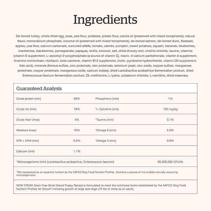 - 1st ingredient is Fresh Turkey: Made with fresh, de-boned turkey, salmon and duck, providing highly digestible protein to support healthy muscle development in small breed pups
