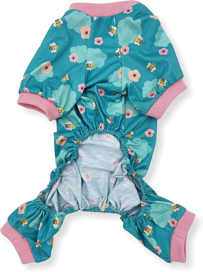 Dog Pajamas Soft COTTON Blend Jumpsuit Cute Pet Clothes for Small Medium Pet (Light Blue Bees 15", Chest 18" - 22")
