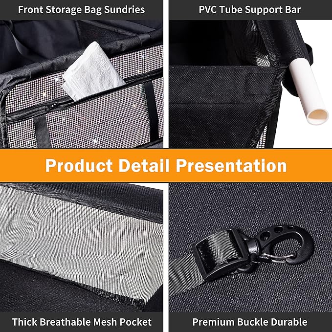 - DURABLE MATERIAL- The pet car seat is made of thick Oxford fabric, PVC mesh material and sparklingly rhinestones,Fashion and keeps your pet dry and comfortable. The main Oxford fabric is non-slip, breathable, strong and durable.