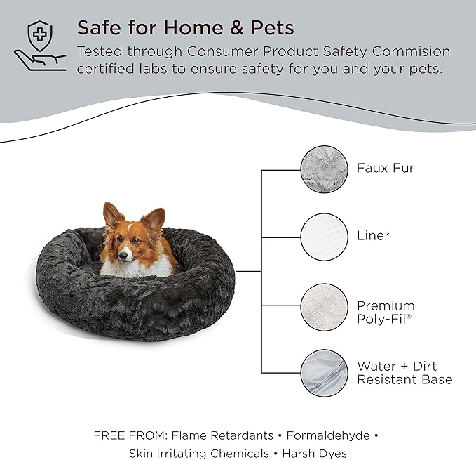 - CALMING COMFORT DESIGN; the bed's round shape, 7in tall bolster, and soft self-warming faux fur make this the perfect bed for cuddling up and burrowing, helping to calm dog anxiety and provide a sense of security while your pet sleeps