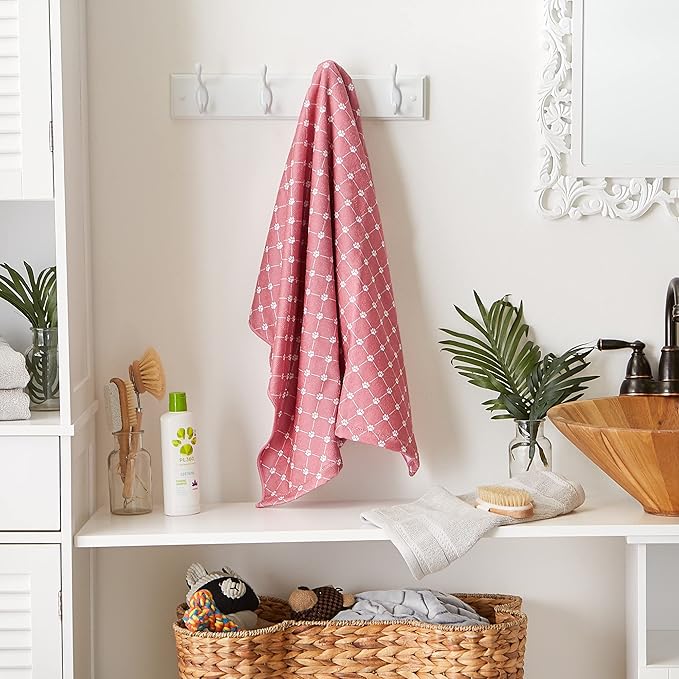 Bone Dry Pet Grooming Towel Collection Absorbent Microfiber X-Large 41x23.5", Trellis
