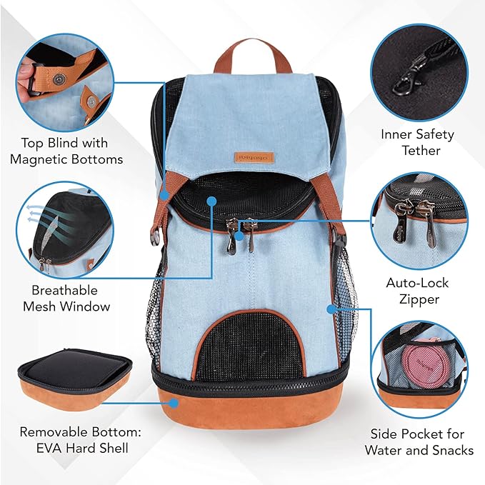- MAXIMUM AIRFLOW WITH SAFETY FEATURES: Equipped with multiple mesh windows to maximize ventilation, plus a top cover with magnetic fasteners to keep your pet undisturbed. It also utilizes detachable EVA Hard Shell and high-density hard bottom support, plus auto-lock sliders and safety tethers to ensure your pet’s safety.