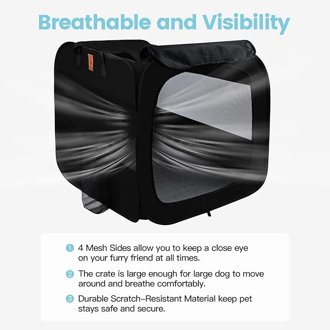 - 【Notice1】This collapsible soft dog crate is designed for your large pets but should not be used to restrict aggressive pets for a long time.