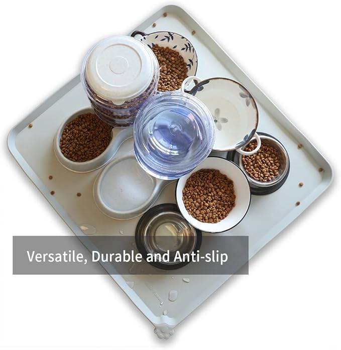 - Extra High raised outer lip prevents food, water and treats from spilling onto your clean floors! Please refer to measurements for size.No more messy spills on floor again.