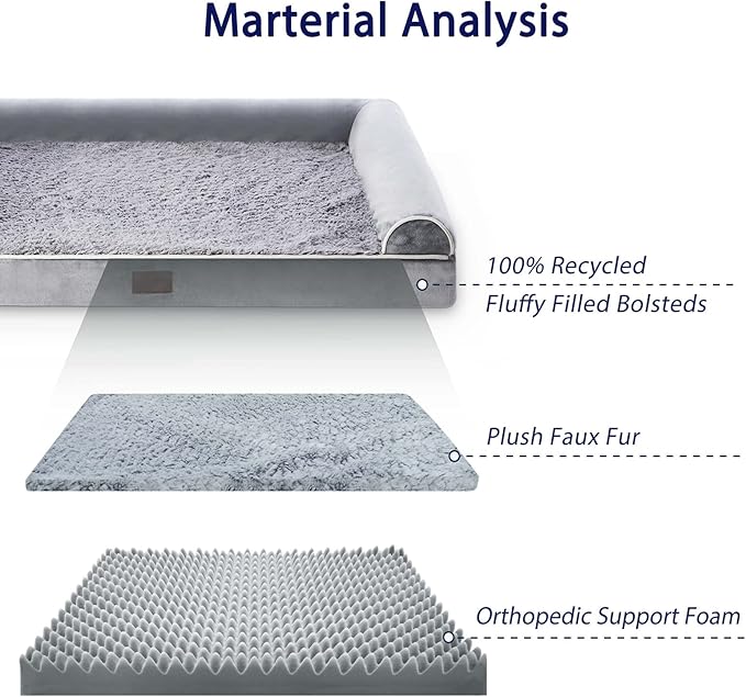 - 🐩【COMFORTABLE AND DURABLE LARGE DOG BED】Super-soft insulating wrapped in soft and fuzzy chenille fabric covers the dog sofa bed. Both materials are that are kind to pets' noses and paws for enhanced snuggling and burrowing comfort.