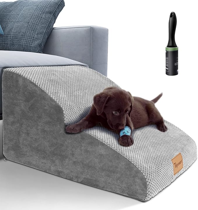 - Safer,Wider&Deeper Steps:Our dog stairs are excellent for those older dogs who are less mobile as they age or for cats with injuries. More wide and deep steps are helpful for reducing the strain that constantly jumping up and down onto lower bed,sofa can have on your pet's joints,and Topmart dog steps will not shake and slip during use. The cover made of corduroy is more frictional than other covers, pets will not slip on the stairs.