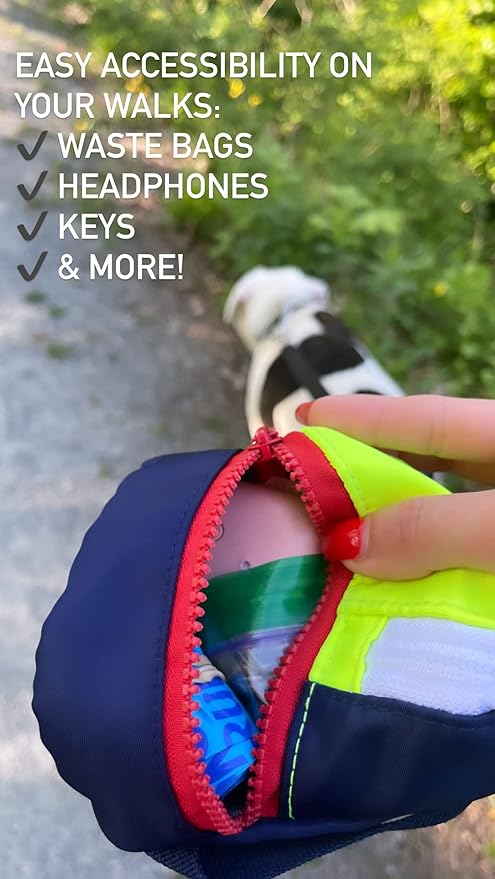 - Practical 🐶 Fits your keys, cash, cards, headphones, treats, etc. so no more awkward juggling of items!