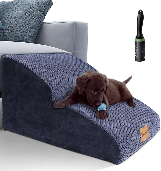 - Safer,Wider&Deeper Steps:Our dog stairs are excellent for those older dogs who are less mobile as they age or for cats with injuries. More wide and deep steps are helpful for reducing the strain that constantly jumping up and down onto lower bed,sofa can have on your pet's joints,and Topmart dog steps will not shake and slip during use. The cover made of corduroy is more frictional than other covers, pets will not slip on the stairs.