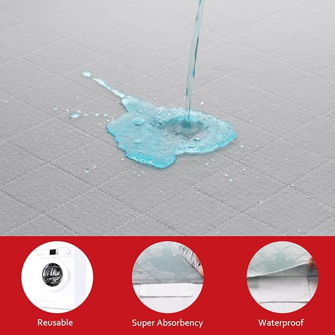 - SUPER ABSORBENT: Made of durable and soft material with 4 layer quilted construction, premium grade leak proof pad can hold lots of liquid; moisture is quickly absorbed into the pad and dispersed.