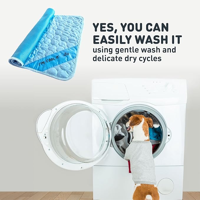 - NON TOXIC , WASHABLE & LONG LASTING | No worry about your dog ingesting gel - free of glues, crystals or gel | Easy to clean- machine washable using a gentle cycle with low spin & delicate dryer | Our durable dog cooling blanket is made of high quality materials with strong seams, retains shape & lasts long time after multiple washes