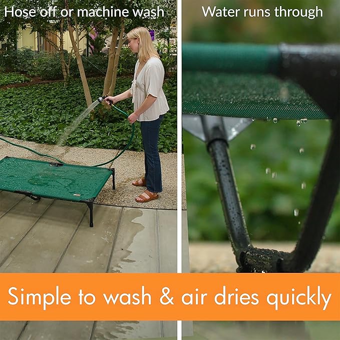 - ALL WEATHER PET COT: Lifted pet bed with a breathable all-mesh waterproof cover is great for indoor and outdoor use and the hammock design aids in pets with joint issues by relieving joint stress
