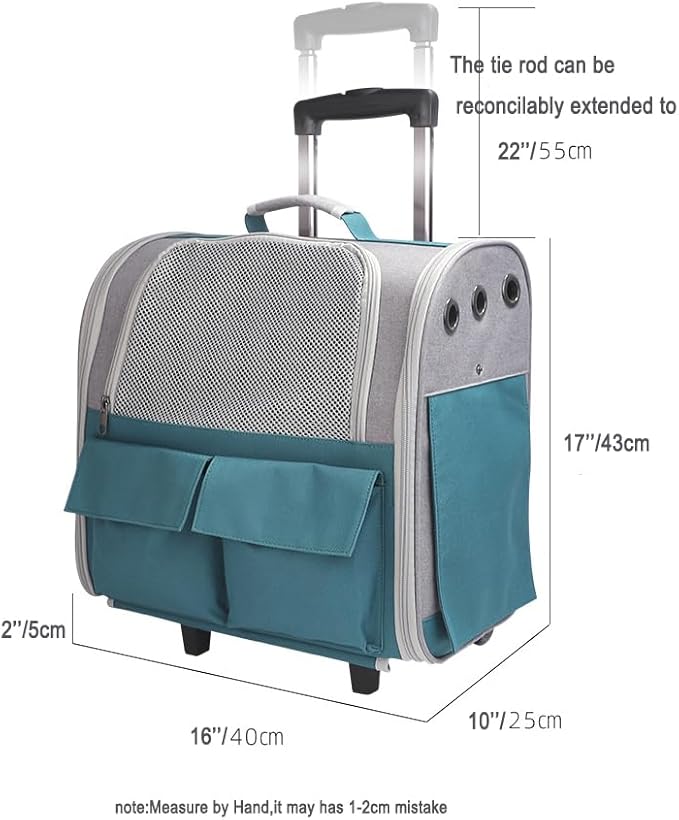 - 【Lightweight & Portable Design】Our pet rolling backpack features a lightweight design that can be used as a pet backpack, placed on top of luggage, or used as a car carrier. It can also be used as a rolling pet carrier, allowing for easy carrying & maneuverability. The stable & sturdy bottom panel, adjustable handle & comfortable grip enable effortless movement of the pet backpack. Whether you're walking or using public transportation, you can easily carry your cat and enjoy the fun of travel.