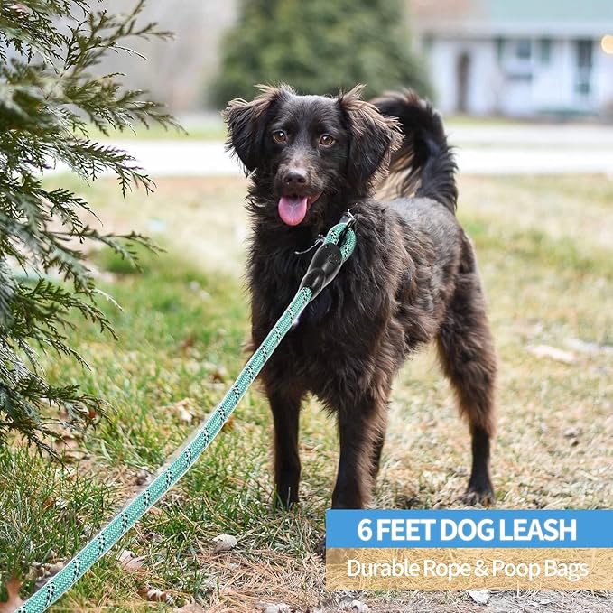 - POOP BAGS - 6 feet leash includes one bag dispenser with sturdy metal clasp and poop bags, the dispenser is reusable, you can refill the bags after running out.