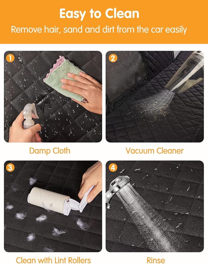 - 【100% Waterproof & Easy Clean Materials】Using unique hot pressing process and new PVC waterproof material to achieve 100% waterproof and impermeable. Protecting your car in all directions from scratch, mud, dirt, and hair, your car backseat will always remain dry and clean. If your pet gets the pet liner dirty, just shake dirt and hair off them or damp cloth or vacuum it and it will be new again in seconds!